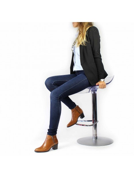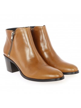 Bottine courte en cuir avec zip intérieur et zip extérieur métal.
