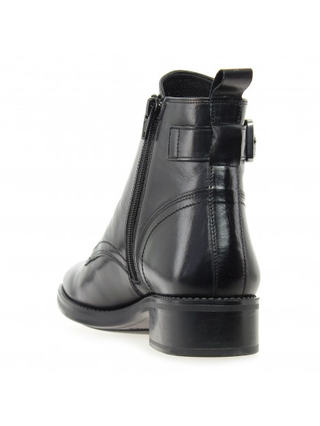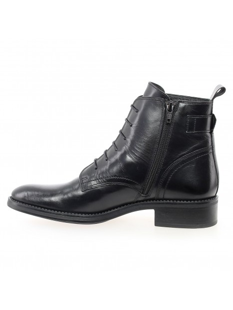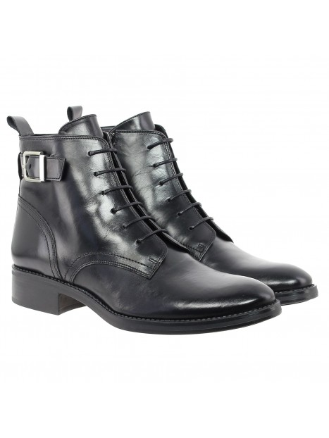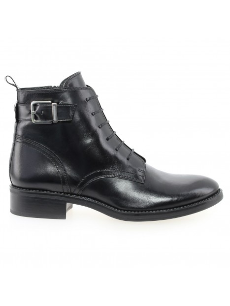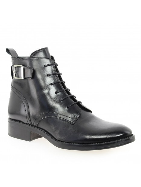 Bottine courte en cuir à lacets avec zip intérieur et une bride boucle métal.