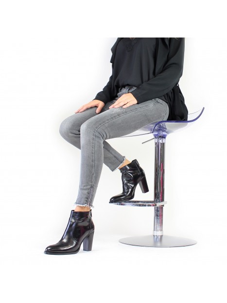 Bottine en cuir avec zip arrière.