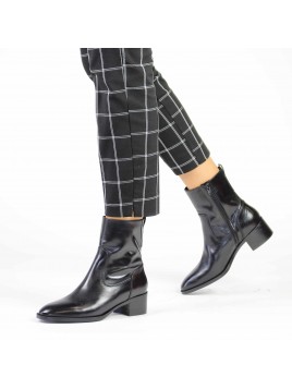 Bottine courte en cuir avec zip intérieur et zip extérieur métal.