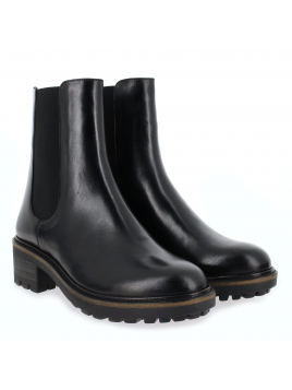 Bottine en cuir glacé à élastiques sur les côtés. Conseil...